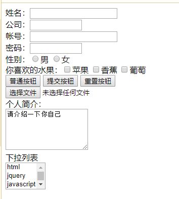 你喜欢的水果:<input type="checkbox" name="gender2" value="苹果"/>苹果